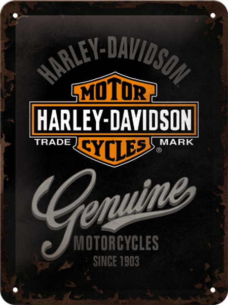 Krásně provedené plechové cedule s grafikou Harley Davidson - ideální pro výzdobu vaší pracovny, klubovny či garáže. Rozměr 30 x 40 cm.