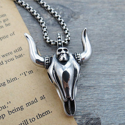 Přívěšek buvol se řetízkem. Přívěšky a prsteny s motorkářskou tématikou, v provedení z chirurgické oceli.