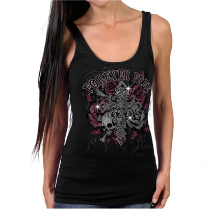Dámské motorkářské tílko od společnosti Hot Leathers. Tílka s kultuvním potiskem. Motiv kříže vykládaný lesklými kameny. Materiál 100% bavlna. Dovoz z USA.Vyber variantu