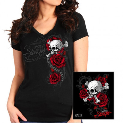 Dámské motorkářské tričko pro největší sraz motocyklů Harley-Davidson na světě - Sturgis v Jižní Dakotě, v USA. Srazové tričko pro rok 2023. Oboustranný potisk. Skvělé motivy, výborný potisk, velmi dobré provedení. Materiál 100% bavlna. Dovoz z USA.Vyber variantu