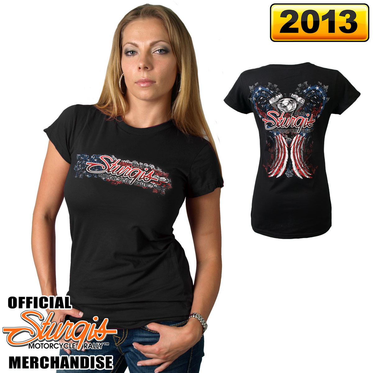 Dámské tričko z kolekce Sturgis pro rok 2013, kterou v Evropě těžko někde seženete. Zboží vyrobené ku příležitosti konání největšího srazu majitelů motocyklů Harley-Davidson na světě - V Jižní Dakotě v USA. Koupit lze v USA nebo už teď u nás. Kolekce jsou limitované ....